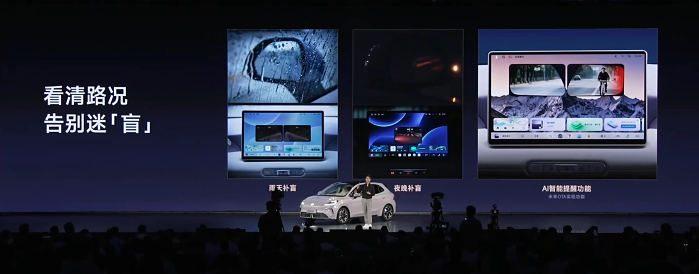 新车还拥有雨天 / 夜晚补盲功能:雨天 / 夜晚补盲 + AI 后视补盲系统(未来 OTA 实现功能)解决下雨天、夜晚开车视线差的问题;支持 360° 全景影像 + 透明底盘、自动泊车、离车泊入;麋鹿测试成绩 74.2km/h;配备同级唯一方向盘加热:可通过手机 App 提前预热,协同座椅加热、空调制热