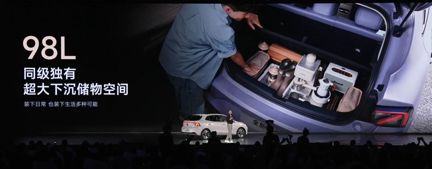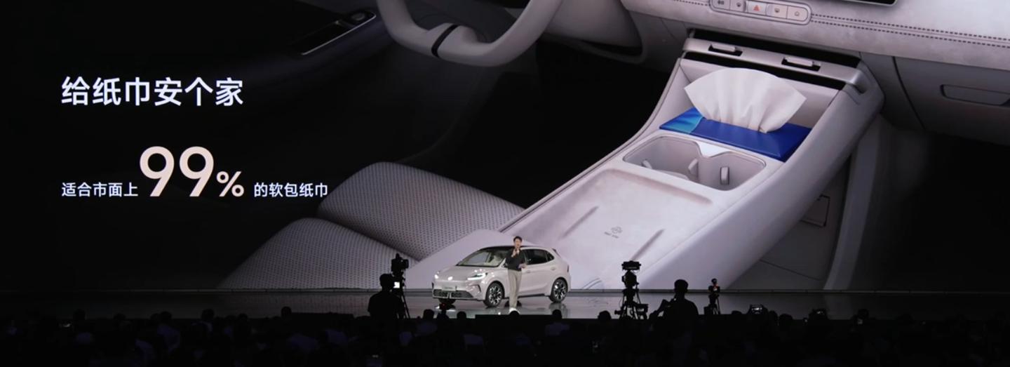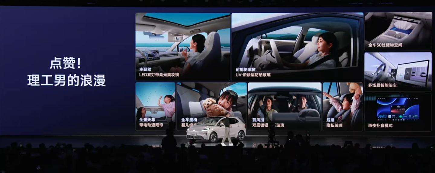 空间表现越级:电池上盖与车身合一,释放车内纵向空间,整车得房率 93.8%,后排空间媲美 B 级车;