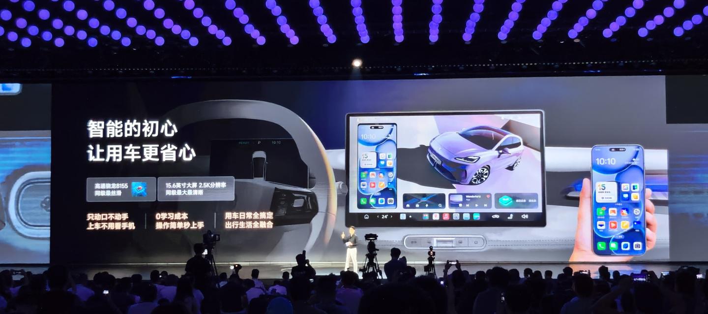 新车搭载高通骁龙 8155 芯片,配备同级最大 15.6 英寸 2.5K 分辨率大屏;支持无缝接力导航功能,可实现寻车、行车、步行导航全程接力,路线始终不断。