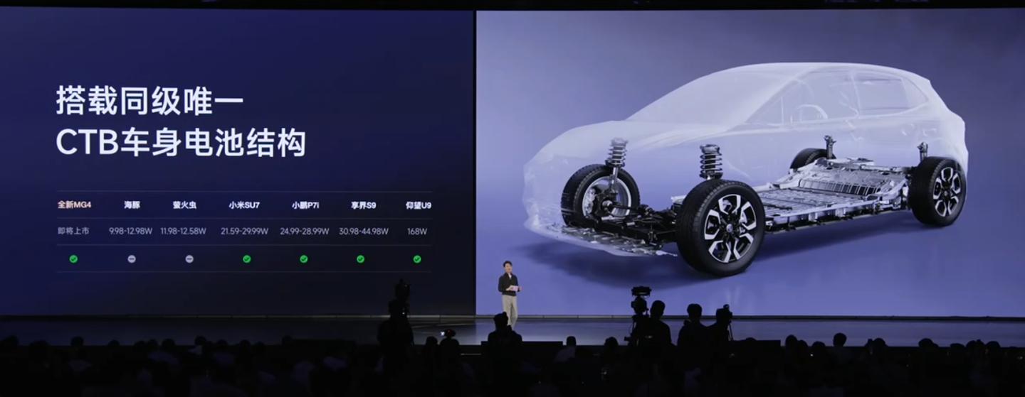 全新 MG4 同级唯一采用 CTB 电池车身一体化技术,带来更大的车内空间利用率、更高的安全保障,让“高端技术”不再是“高端车型”专属,重构 10 万级安全标准。
